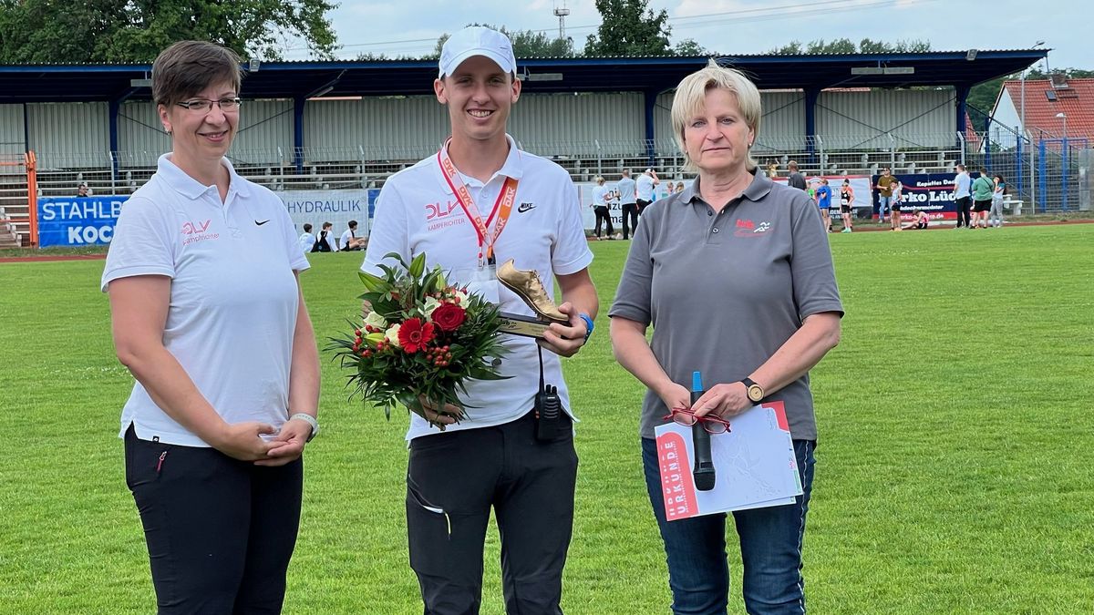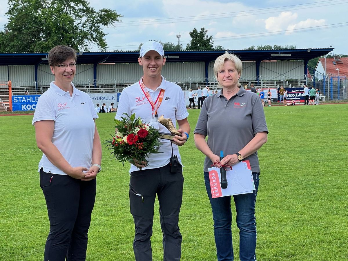 Hagen Pohle für seine Karriere mit dem „Goldenen Spikes“ geehrt. Der „Goldene Spikes“ kann an einen aktiven oder ehemaligen Athleten des LVB nach Erbringung einer herausragenden sportlichen Leistung in der vergangenen Saison oder nach Ende einer erfolgreichen aktiven sportlichen Karriere verliehen werden. Hagen Pohle konnte mehrfach in seiner Karriere glänzen. 2009 war er U18 Weltmeister in 10.000m Gehen, 2011 U20 Europameister in 10.000m Bahngehen und 2013 U23 Europameister in 20km Gehen. Hagen Pohle war mehrfach Deutscher Meister und nahm mehrfach an Europa- und Weltmeisterschaften teil. 2016 war er Teilnehmer bei den Olympischen Spielen in Rio de Janeiro/BRA über 20km Gehen. Zudem ist er seit 2014 als Kampfrichter, DLV Gehrichter und DLV-Nachwuchstrainer neben seinem Beruf bei der Bundespolizei tätig. Nach 15 Jahren beendete Hagen Pohle 2021 seine aktive Karriere im Gehen.