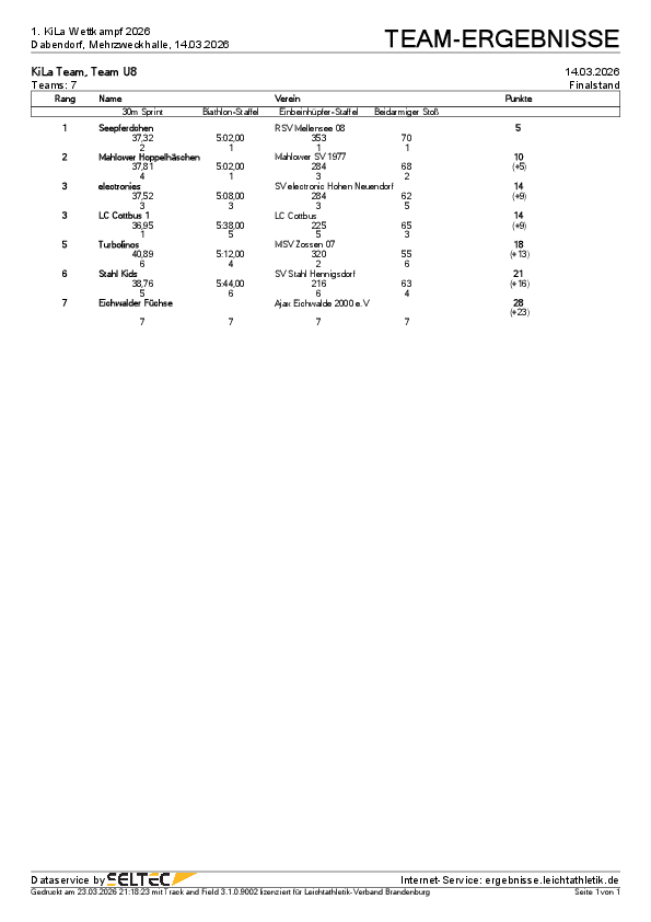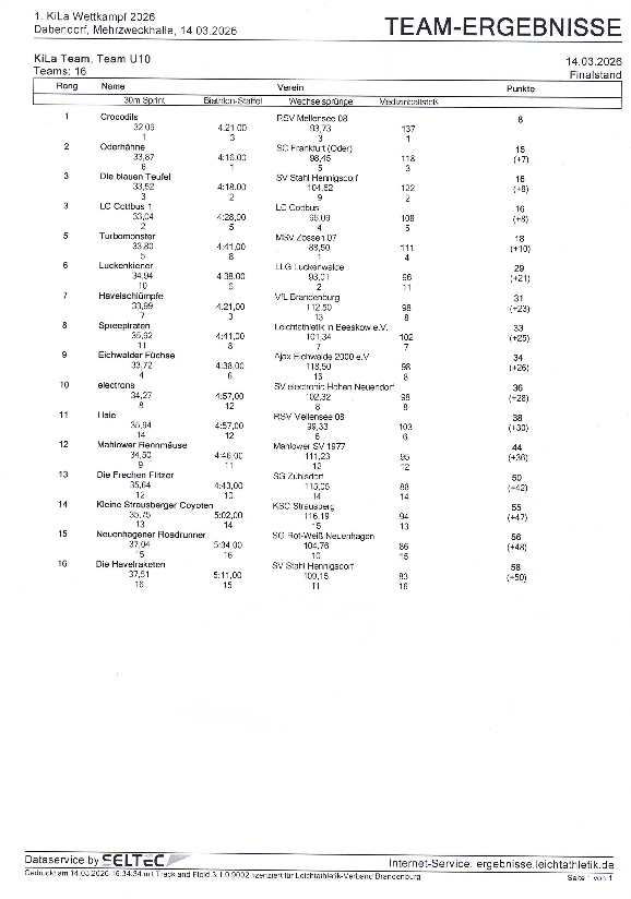| U10 | XXX | XXX | XXX | XXX | XXX | End stand | Wertungs- |