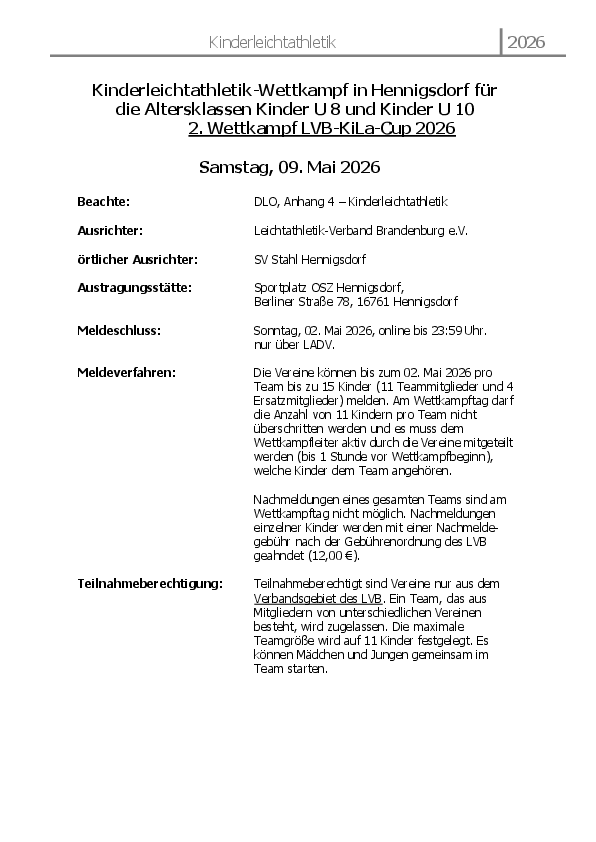 LVB-KILA-Pokal 2026