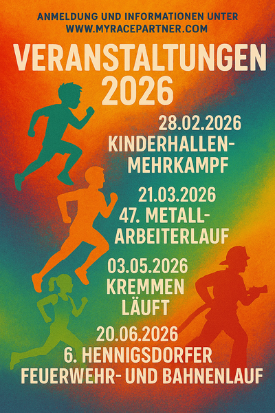 Ob Kinderhallenmehrkampf, Metallarbeiterlauf, Kremmen läuft oder Feuerwehr- und Bahnenlauf – 2026 wird sportlich!